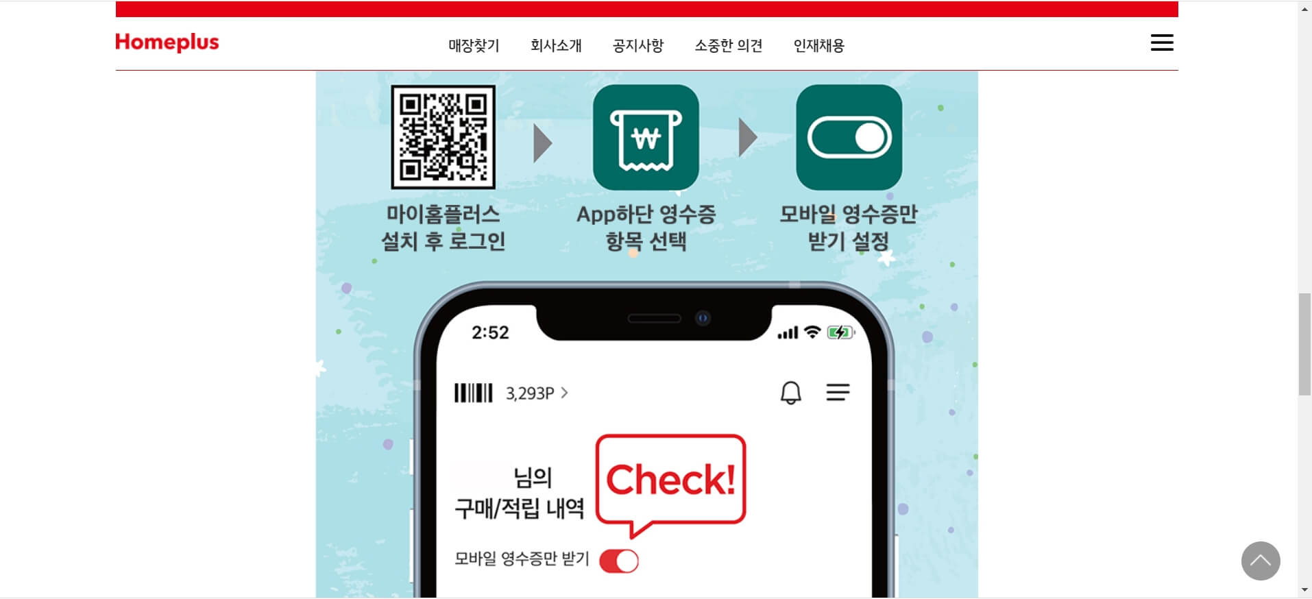 만약 홈플러스를 자주 이용하는 분이시라면 홈플러스 홈페이지에 가입하고 사진과 같이 전자영수증 발행을 설정하시면 됩니다.