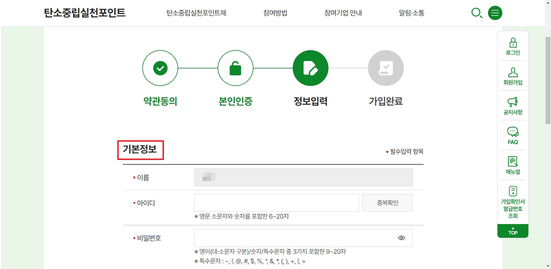 탄소중립실천포인트 참여 방법(1) - 회원가입